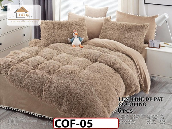 Lenjeriile Cocolino de la Casa New Concept sunt realizate dintr-un material numit fleece, cunoscut pentru finețea și durabilitatea sa. Acest material aduce un strat suplimentar de căldură și confort, ceea ce le face ideale pentru nopțile friguroase. Produsele din gama Cocolino Fluffy oferă două tipuri de texturi: o parte interioară moale și o parte superioară mai groasă și pufoasă. Această combinație oferă un confort deosebit, potrivit celor care își doresc o lenjerie călduroasă și plăcută la atingere.