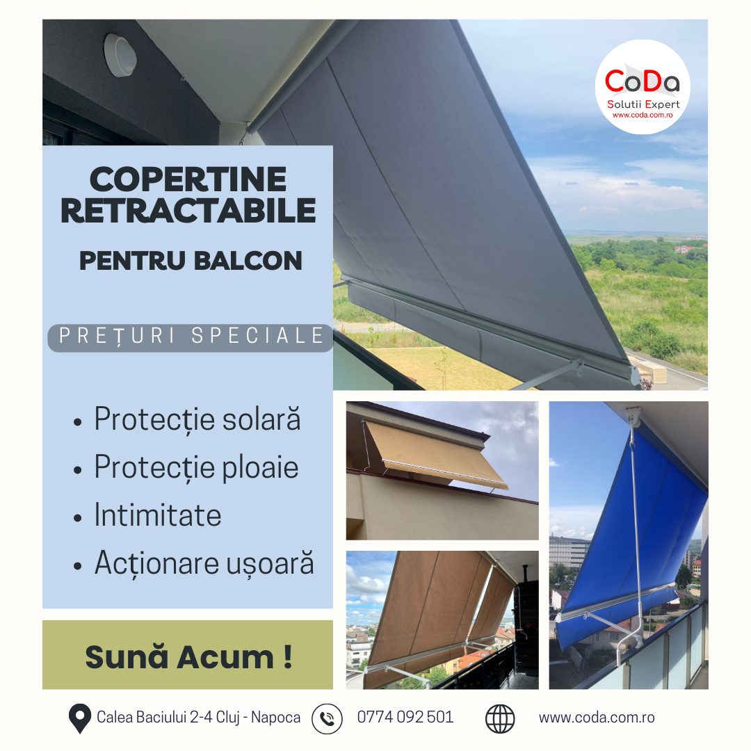 Balcoanele apartamentelor prezintă provocări unice: spațiu limitat, expunere directă la soare și nevoia de intimitate față de vecini. O copertina balcon este soluția ideală. Este mai elegantă și mai eficientă decât o umbrelă, care este instabilă în vânt și ocupă spațiu prețios pe podea. O copertina balcon se montează pe perete sau pe tavanul balconului superior, eliberând complet spațiul de jos. Ea oferă umbră, răcorește interiorul apartamentului și creează un paravan discret, transformând un mic balcon într-un refugiu privat prețios în aglomerația urbană.
