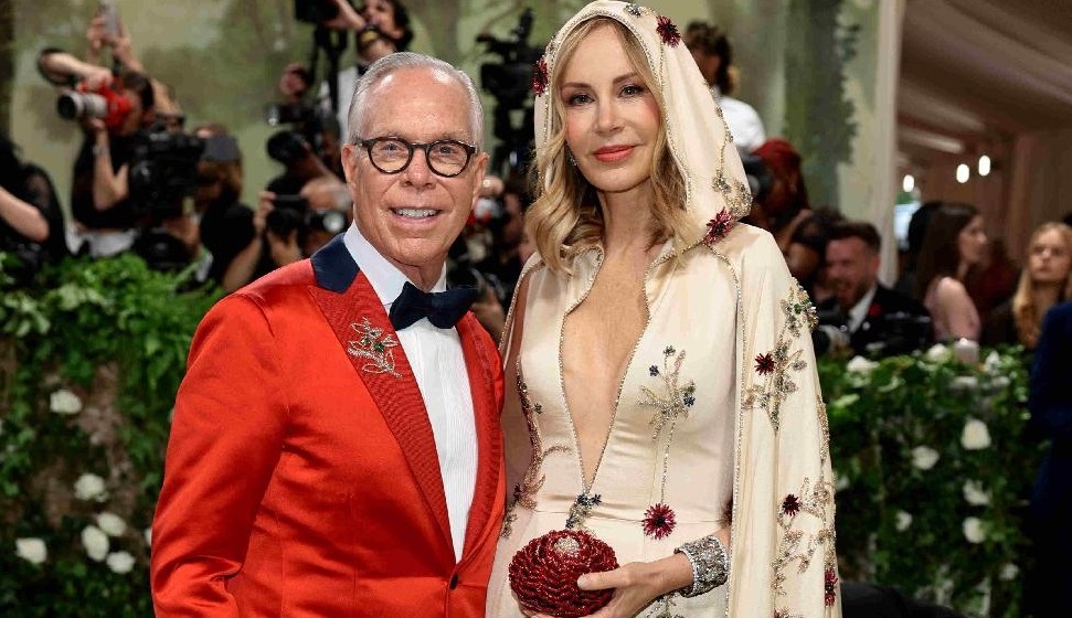 Îmbrăcați complet în TOMMY HILFIGER personalizat, cuplul Hilfiger a avut o masă de 12 persoane la Gala Metropolitan Museum of Art’s Costume Institute din New York City.